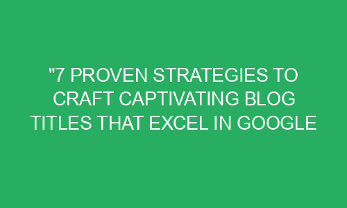 Welcome to our blog post on crafting captivating blog titles that excel in Google search. If you’re a blogger or content creator, you know that a well-crafted blog title can make all the difference in attracting readers and boosting your search engine rankings. In this post, we will explore seven proven strategies to help you create attention-grabbing titles that not only capture the essence of your content but also excel in Google search results. Let’s dive in!
