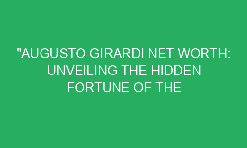 Welcome back, my young readers! Today, we are going on a thrilling adventure to discover the hidden fortune of a sensational philanthropist named Augusto Girardi. Prepare yourself for an exciting journey filled with fascinating facts and stories. As we delve into the life of Augusto Girardi, we will uncover his net worth and how he has used his wealth to make the world a better place. So, sit back, relax, and let’s dive in!