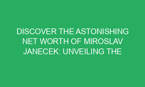 The captivating story of Miroslav Janecek and his astonishing net worth leaves us in awe. From humble beginnings to unparalleled success, Miroslav’s journey is one of determination, innovation, and generosity. His wealth is not only a testament to his business acumen but also a reflection of the positive impact he has made on the world.