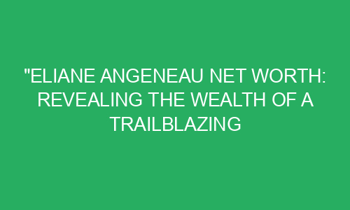 Eliane Angeneau Net Worth: Revealing the Wealth of a Trailblazing Entrepreneur