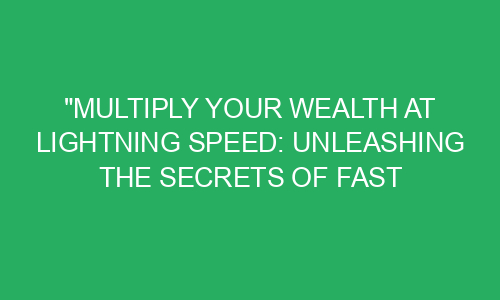 Multiply Your Wealth at Lightning Speed: Unleashing the Secrets of Fast Back Net Worth