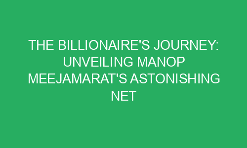 Once upon a time, in a small village in Thailand, lived a young boy named Manop Meejamarat. Manop’s family was poor, but he had big dreams. Little did he know that his journey would lead him to become one of the wealthiest individuals in the world. Let’s delve into the astonishing net worth of Manop Meejamarat and discover how he achieved such immense success.