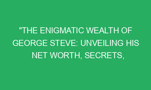 The Enigmatic Wealth of George Steve: Unveiling His Net Worth, Secrets, and Success