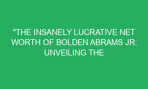 Have you ever wondered how some people become incredibly wealthy? They seem to have an abundance of money, living a life full of luxury and opulence. Bolden Abrams Jr is one such individual who has amazed the world with his insanely lucrative net worth. But what is the secret behind his fortune? Today, we unravel the mysteries and share with you the fascinating story of Bolden Abrams Jr and the incredible wealth he has accumulated over the years.
