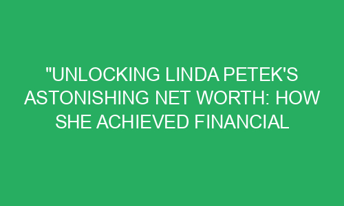 Do you ever wonder how some individuals manage to achieve extraordinary financial success? Well, hold on to your seats because we are about to unveil an incredible story of how Linda Petek, a regular person just like you and me, achieved a net worth that will leave you astounded. Linda’s journey is filled with determination, hard work, and some smart financial decisions. Let’s dive into this fascinating tale and discover the secrets behind her astonishing net worth.