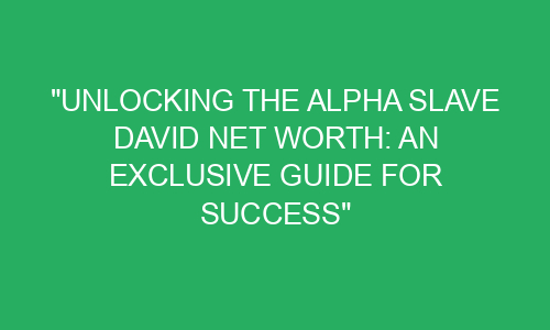 Unlocking the Alpha Slave David Net Worth: An Exclusive Guide for Success