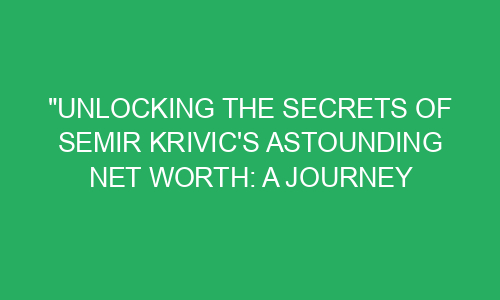 Unlocking the Secrets of Semir Krivic’s Astounding Net Worth: A Journey to Success
