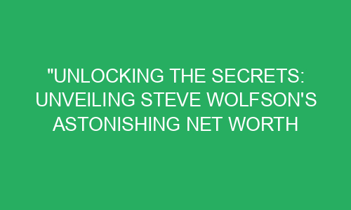 Unlocking the Secrets: Unveiling Steve Wolfson’s Astonishing Net Worth and Path to Success