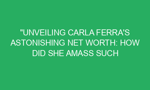 Have you ever wondered how some individuals become incredibly wealthy? One such person is Carla Ferra, who has amassed an astonishing net worth over the years. In this blog post, we will delve into the fascinating journey of Carla Ferra and explore the key factors that led to her immense wealth. So, let’s take a closer look!