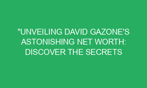 Unveiling David Gazone’s Astonishing Net Worth: Discover the Secrets Behind His Wealth!