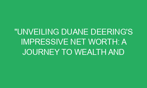 In conclusion, Duane Deering’s journey to wealth and success is an inspiring tale of hard work, dedication, and smart financial decisions. Through his determination, he was able to build an impressive net worth and achieve the success he always dreamed of. By learning from his story and embracing the lessons he teaches, we too can work towards our own version of wealth and success. So let Duane’s journey be a guiding light and an inspiration for all of us. Start your own journey today, and who knows, maybe one day we will be sharing your impressive net worth with the world too.