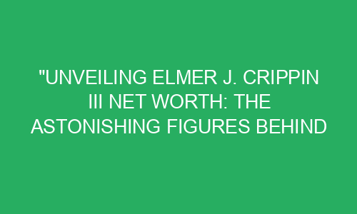 Unveiling Elmer J. Crippin III Net Worth: The Astonishing Figures behind his Success