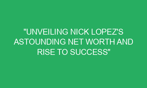Unveiling Nick Lopez’s Astounding Net Worth and Rise to Success