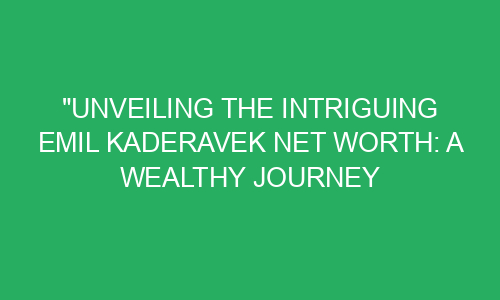 Unveiling the Intriguing Emil Kaderavek Net Worth: A Wealthy Journey Beyond Imagination